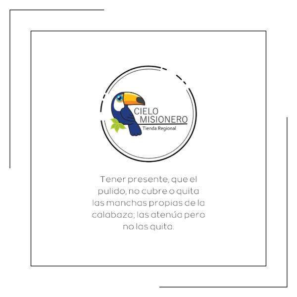Por tratarse de un producto natural, puede presentar detalles; el pulido no cubre o quita manchas propias de la calabaza, las atenúa pero no las cubre.